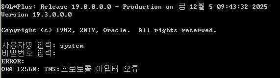 ORA-12560: TNS:프로토콜 어댑터 오류가 떴습니다