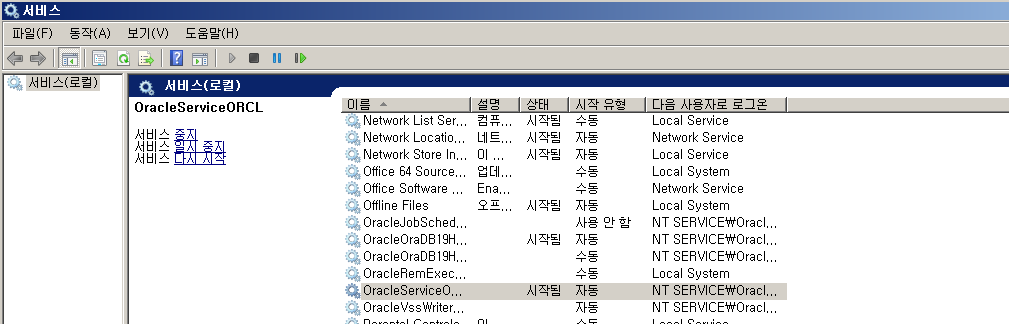 OracleServiceORCL( OracleServiceXE)를 시작시켜줍니다