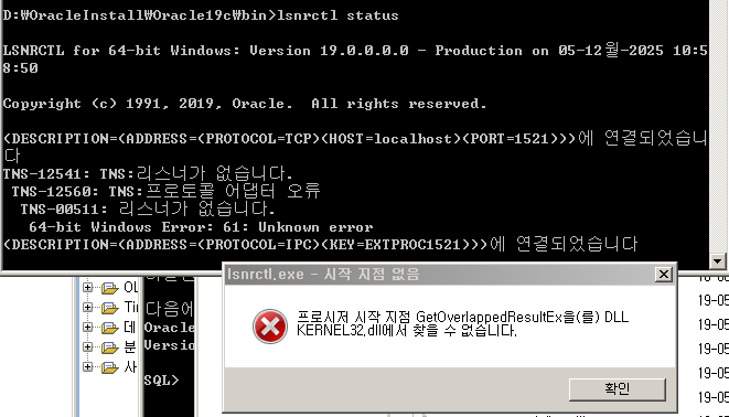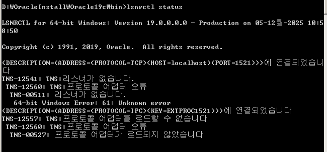 서비스에서 OracleOraDB19Home1TNSListener도 시작해주었는데 말이죠