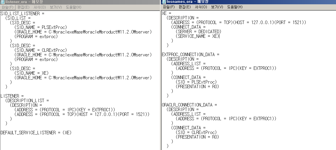 listener.ora 과 tnsnames.ora 파일을 수정해주어야한다.