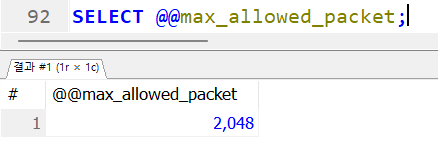 -허용 바이트수 변경 (GLOBAL이면 재접속 필요)