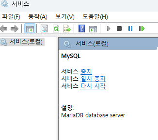 ② Windows 서비스 확인 → MySQL(MariaDB) 서비스 중지 상태