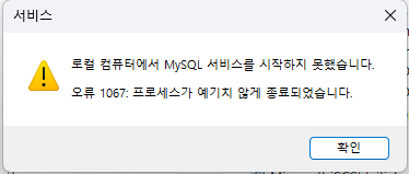 - 오류 1067: 프로세스가 예기치 않게 종료되었습니다