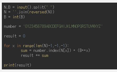이 분은 N=''.join(reversed(N))를 통해 N을 뒤집어서 제곱승을 계산해주었다.
