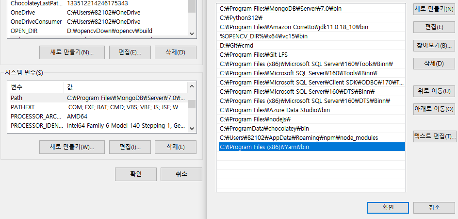 각자 설치한 경로에 따라 추가해주면 됨. ( ~~ \Yarn\bin)