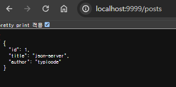 npx json-server --port 9999 --watch db.json 를 터미널창에 실행시키면